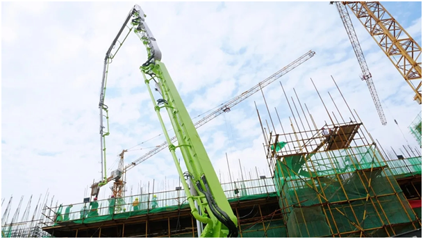 △中聯(lián)重科汕德卡底盤泵車在施工現(xiàn)場