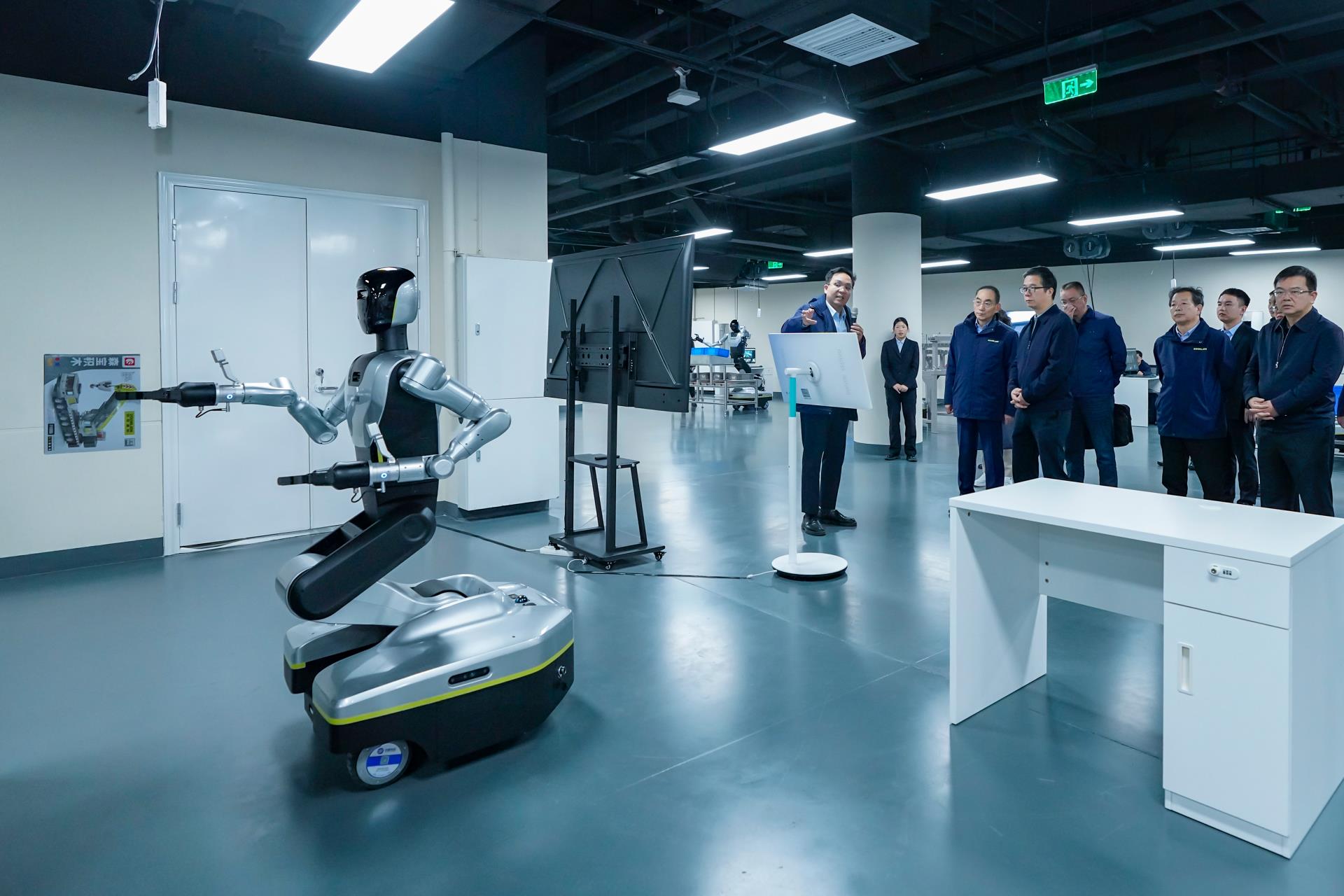 ▲湖南省國資委黨委書記、主任肖文偉一行調(diào)研中聯(lián)重科具身智能機(jī)器人訓(xùn)練場(chǎng)